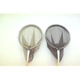 The Frog net is made of 1/2" plain aluminum tubing on a 15" diameter hoop. It has a 1" diamond-emboosed aluminum handle, 6" long which you can easily attach a 1" unvarnished handle, up to 60" long , available in most hardware stores. The net is 1/4" mesh - 22" deep. Made in USA