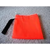A special bag for mushroom hunters, size 18"x 18', fluorescent orange, Ace netting, 1/8' mesh. It has a 12" hand strap for easy carrying, and a sliding cord lock. Easy to open and close. Carrying in this bag will help spread the spore at the same time. The bright color helps to avoid misplacing it. MADE IN USA.