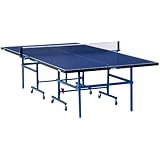 If ITTF-approved competition tables seem pricey--and you aren't planning to have any Olympians over anytime soon--the Joola Quattro table makes a terrific alternative. A less expensive version of Joola's other tables, the Quattro has a thin top that still measures a respectable 19 mm, along with an all-metal frame and trundle system that's similar in design to the Duomat table. The major differences are that the wheels are less heavy duty, the metal bars are not as over-engineered, and the weight is much less--a slender 100 pounds per table half. It all adds up to a good balance of price point and performance, especially for the casual player that doesn't expect to host a national tournament. Best of all, the table is built to the same high-quality standards of workmanship as its high-priced brethren. Available only in blue, the Quattro weighs 216 pounds and includes a four-wheel support system for each half. A net set is also included.